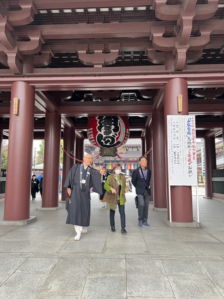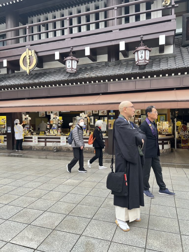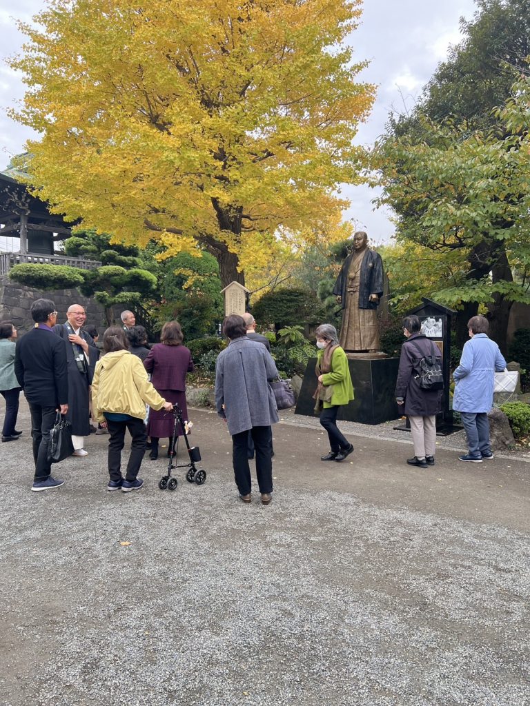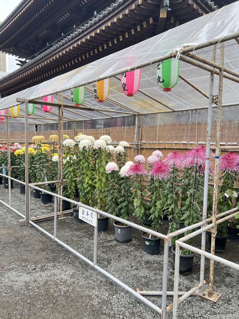 その後、境内散策で北の湖関の銅像を見学し、境内に彩られている菊の美しい作品を拝見し、更には、境内の仲見世で買い物をし、心温まる時間を過ごし無事に川崎大師を後にした。