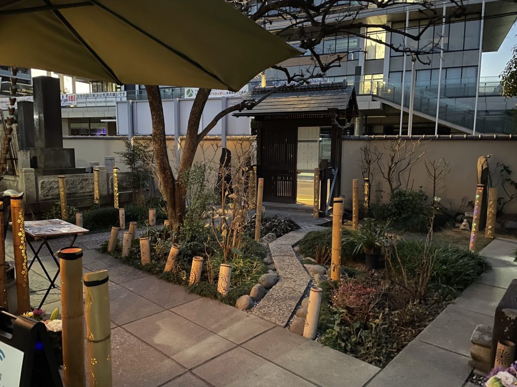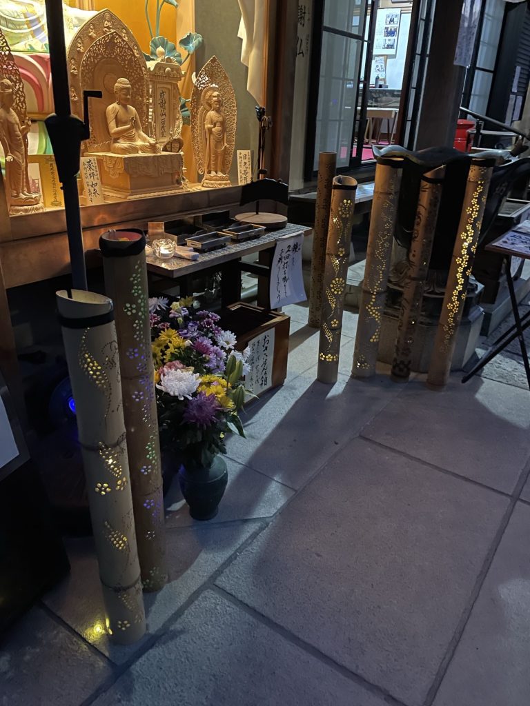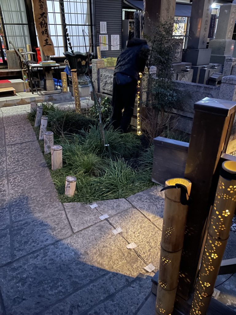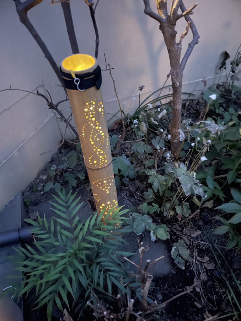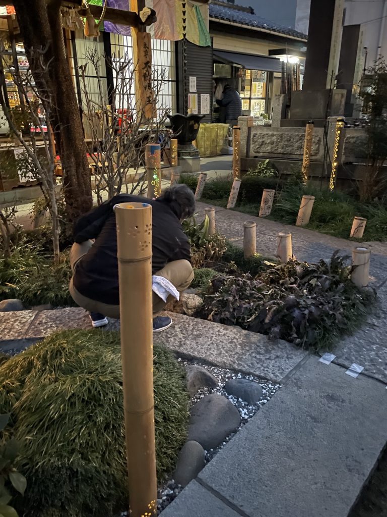 境内に大山様が御奉納頂きました竹燈籠を灯しました。